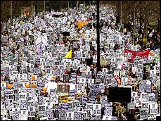 Sign up for the "vote-no-to-war" petition against USA planning to attack Iraq against the will of most of the people in the world. Today, 15th of February is when anti-war rallies and demos are being staged all over the world by millions of people; estimated to be