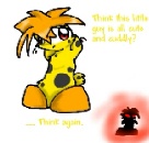 This is what I am supposed to look like in one of the computer games (described as being a creature of "gold with black spots" in this website), and known as a "chia". My name is "C.C. = Chilla-Chi". In addition, I also have super powers and have defeated lots of other contenders in this game.