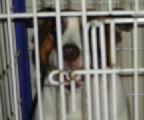 More dog family pictures showing Venus just after the exhausting delivery of her 4 puppies and of Hugo the pups' father (caged and behind bars for being naughty).